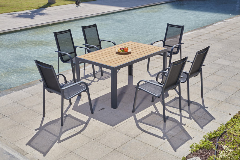 Description: The Erinöz Berlin series garden table has a modern look and a durable structure. Berlin garden tables are protected against water, heat, and sunlight. With its aluminum frame, you can use it effortlessly for many years. The table's top is made from stylish and sturdy iroko wood, ensuring longevity. It is produced using lead-free electrostatic paint. Completely natural, no harmful substances to human health are used in the production. Erinöz Garden Furniture is one of the leading manufacturers of garden tables in the industry.