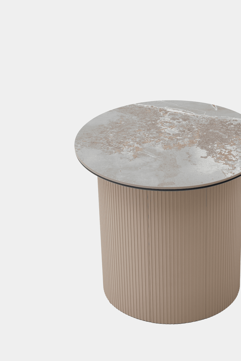 Model: Liora Aluminum Side Table - Sand Color and Beige