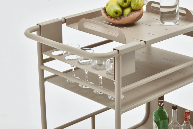 Additional Information: Our product is completely made of aluminum material. Architectural segment powder paint is used in our products and has UV resistance. Due to its features, our products can be easily used in the garden, balcony and terrace, and you can also use it indoors with its stylish appearance. It can be easily transported thanks to the wheel available in the product. Thanks to the compartments and shelves on it, you can easily place your glasses and the items you need.