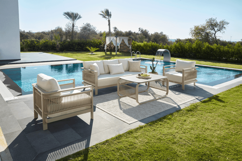 Additional Information: Our product is made entirely of aluminum. The fabrics are guaranteed to resist fading, are water repellent, water resistant, and washable. Architectural-grade powder coating is used, offering UV resistance. The cushions have zippers, making washing convenient. Due to these features, our products can be used comfortably in gardens, balconies, and terraces, while also offering an elegant look for indoor use.