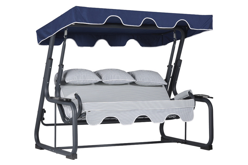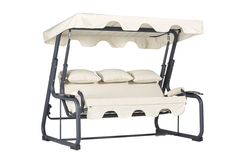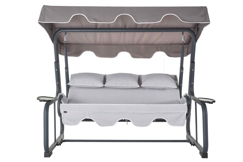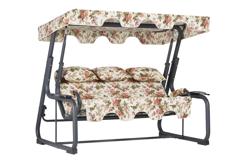 The Vitis model 3-person swing operates quietly and offers long-lasting durability thanks to its steel bearings. It is fixed and does not fold.