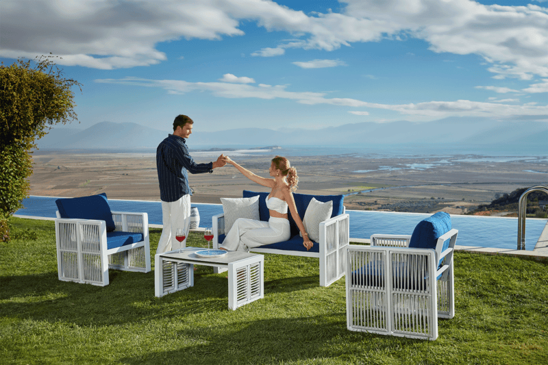 Our product is made entirely of aluminum. The fabrics are fade-resistant, water-repellent, and washable. Architectural-grade powder coating is used on our products, which also have UV resistance. The cushions are zippered, making cleaning easier. Due to these features, our products are ideal for use in gardens, balconies, and terraces, and their stylish design makes them equally suitable for indoor spaces.